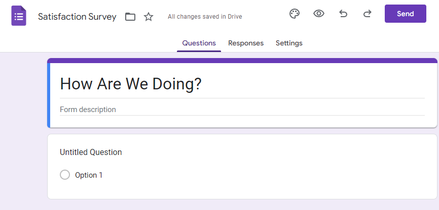 For instance, if it's a client satisfaction survey, rename the document to "Satisfaction Survey" and title the form "How Are We Doing?"