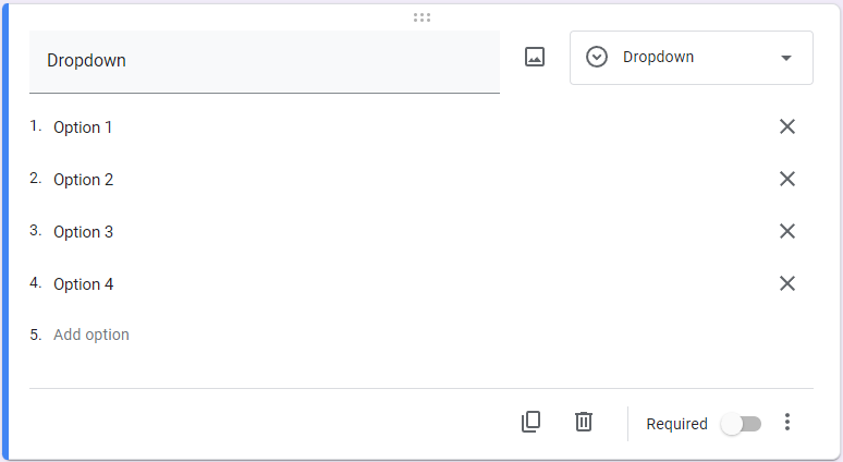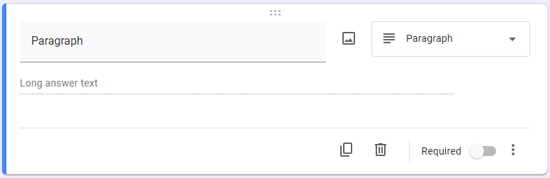 You can choose from various question types based on your requirements and the form's purpose and decide whether each question is mandatory. These include: