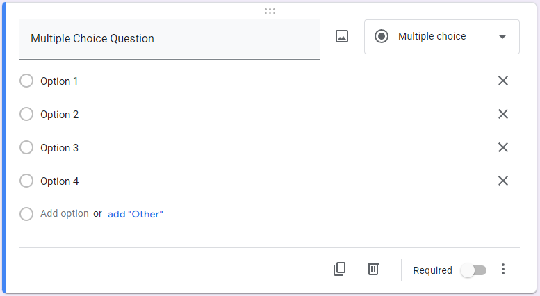 This option allows you to create a group of multiple choice questions formatted as a grid, which makes asking numerous questions that would be answered the same way much easier.